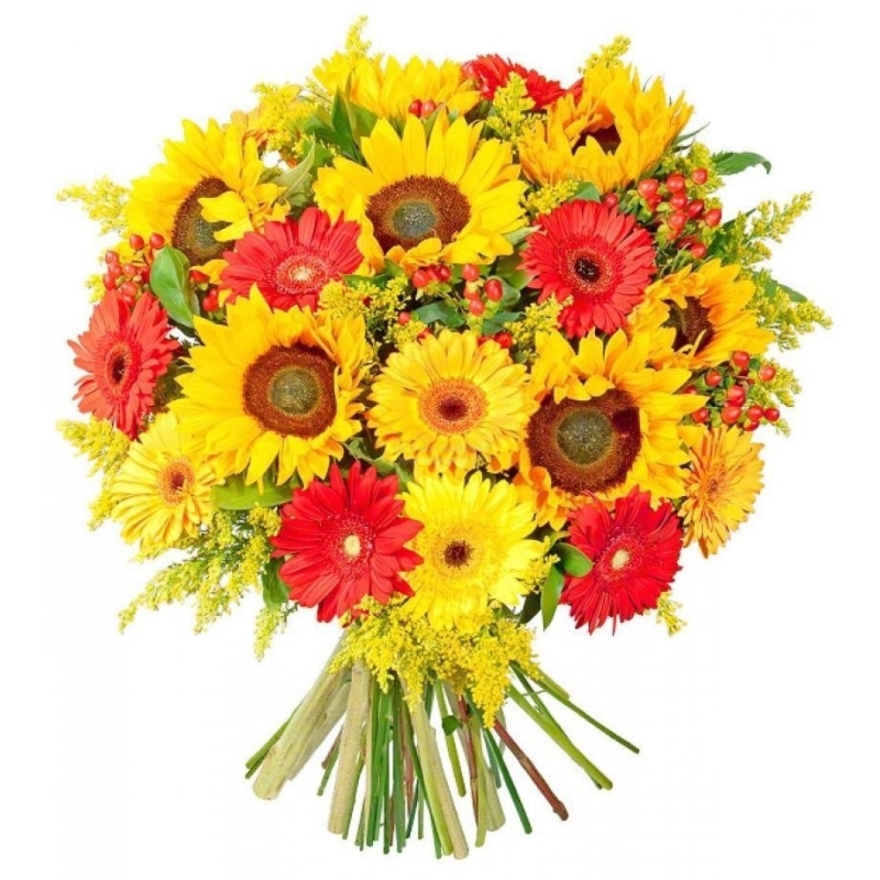 Гербера, Гиперикум, Подсолнух |
