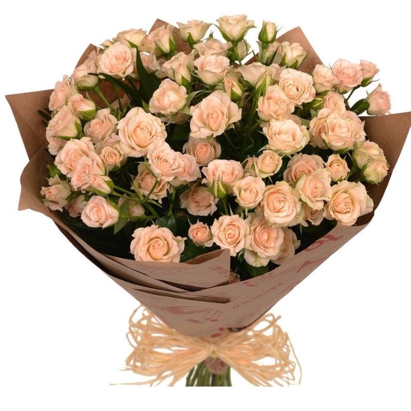 Букет состоит из 11 веток кремовой кустовой розы, крафт.