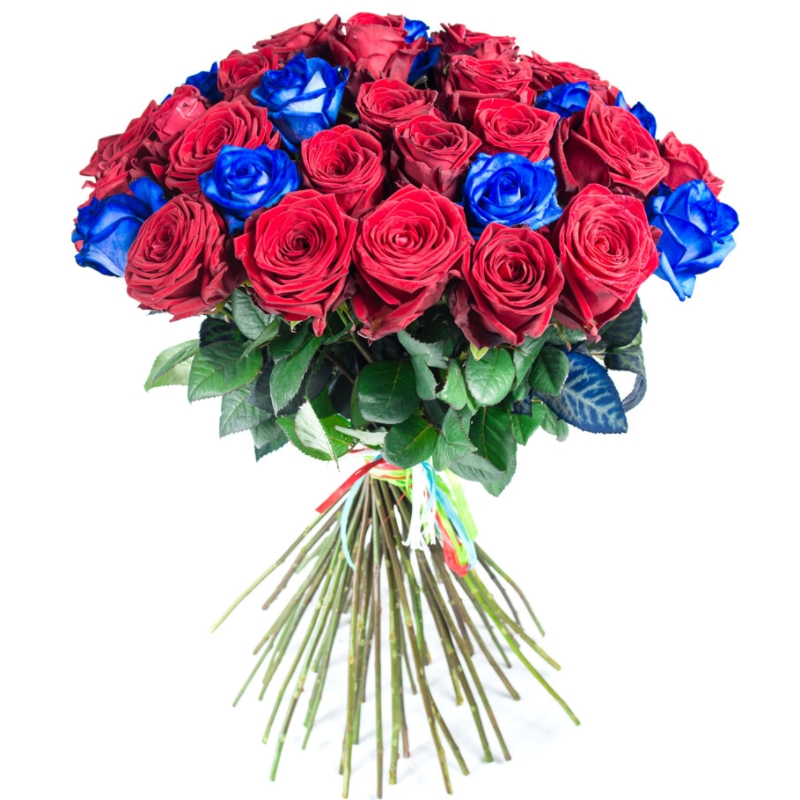 Букет из 35 синих и красных роз